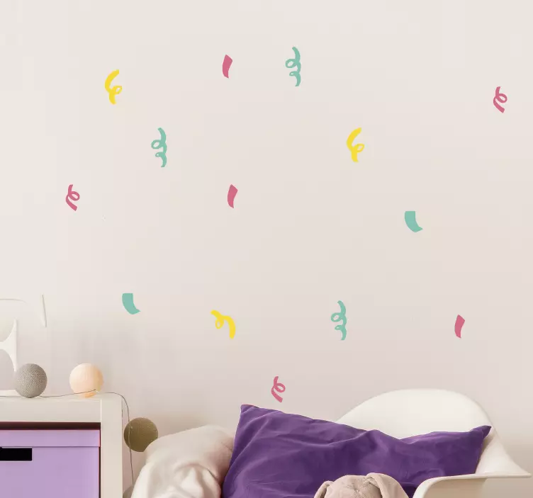 Transform your space with our Colorful curved shapes decoration wall sticker, featuring a delightful design that includes playful confetti and twisted, modern shapes. The vibrant colors and dynamic curves create an atmosphere of joy and creativity, making it a perfect addition to any room!