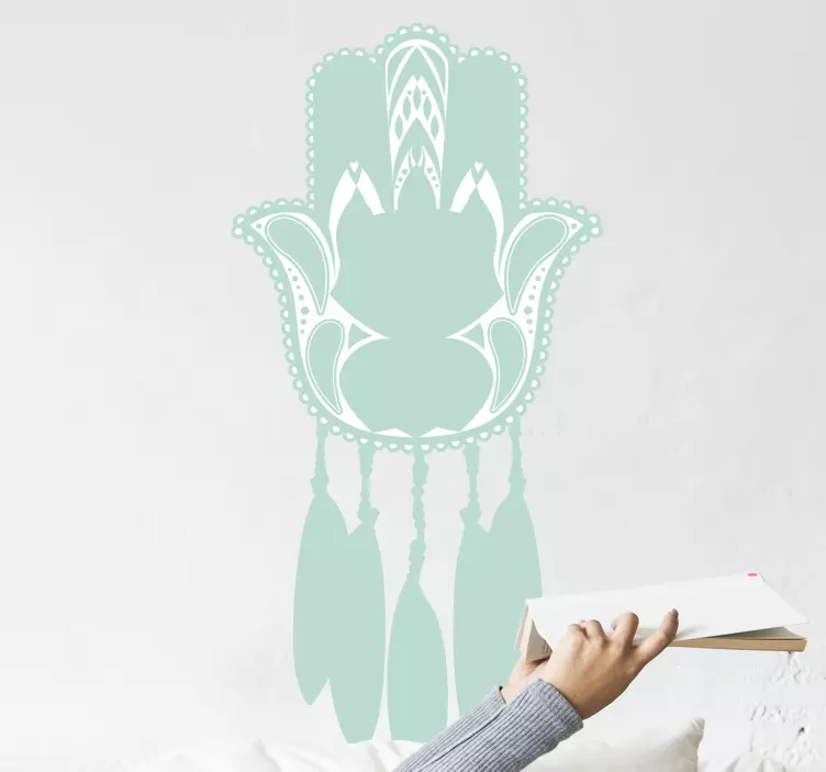 Introducing our stunning Decoration wall sticker graceful botanical emblem, a captivating design that artfully combines a dreamcatcher, a graceful hand, and an exquisite array of floral elements. This elegant piece embodies the essence of nature, showcasing a soothing palette of turquoise and teal. Its artistic flair is perfect for adding a touch of serenity and beauty to any space!