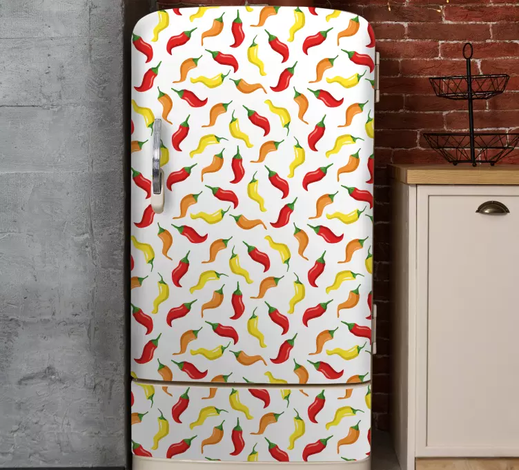 Brighten up your kitchen with our Fridge sticker colorful chili peppers, a stunning design that features vibrant and lively chili peppers. This colorful pattern not only enhances the aesthetic of your fridge but also adds a touch of fun to your culinary space. Perfect for food lovers, this sticker will transform your kitchen into a cheerful haven!
