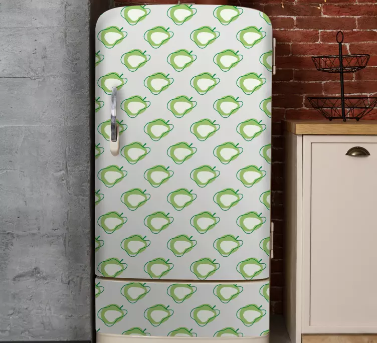 Brighten up your kitchen with our Fridge sticker fruit pattern design, featuring a refreshing doodle of vibrant apples and other fruits! This delightful pattern adds a splash of color to your refrigerator, transforming it into a cheerful centerpiece in your home. The green tones beautifully blend with any kitchen decor, making this sticker a perfect addition to your culinary space.