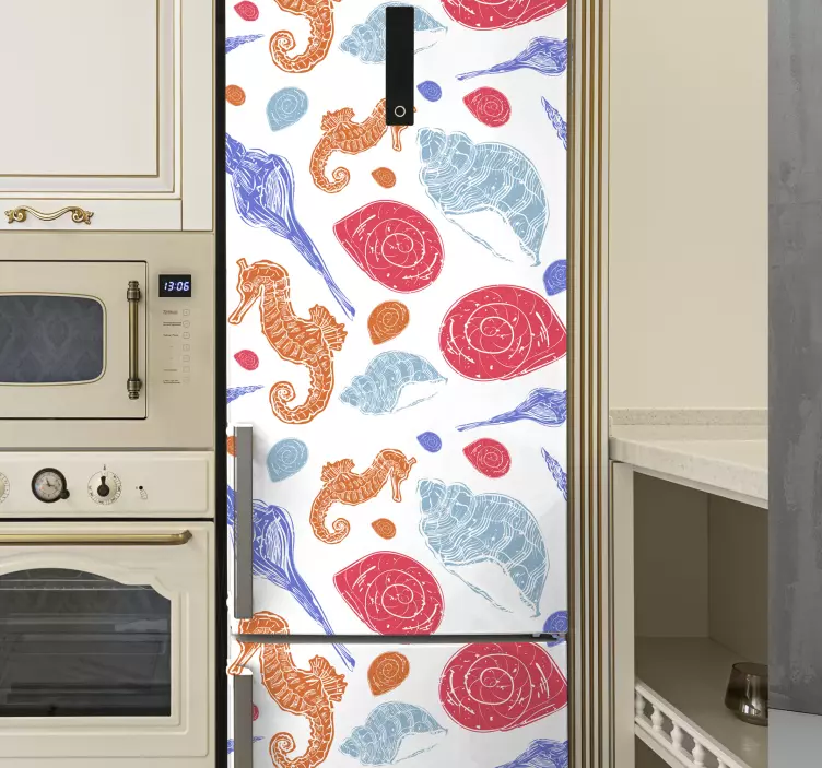 Introducing our vibrant Fridge sticker seahorse and shells design, featuring a delightful array of seahorses and seashells against a playful marine backdrop. This colorful pattern captures the essence of sea life, bringing the aquatic charm of the ocean into your home. Perfect for transforming your fridge or any appliance into a stunning focal point!