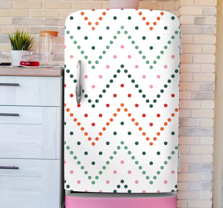Introducing our Fridge sticker vibrant chevron pattern, a stunning design that combines playful dots, zigzag patterns, and a multicolor palette to brighten up your kitchen! This modern and colorful fridge sticker is perfect for adding a lively touch to your home, featuring a delightful mixture of zigzag lines and polka dots that create a vibrant atmosphere, making every glance at your fridge a joyful experience.