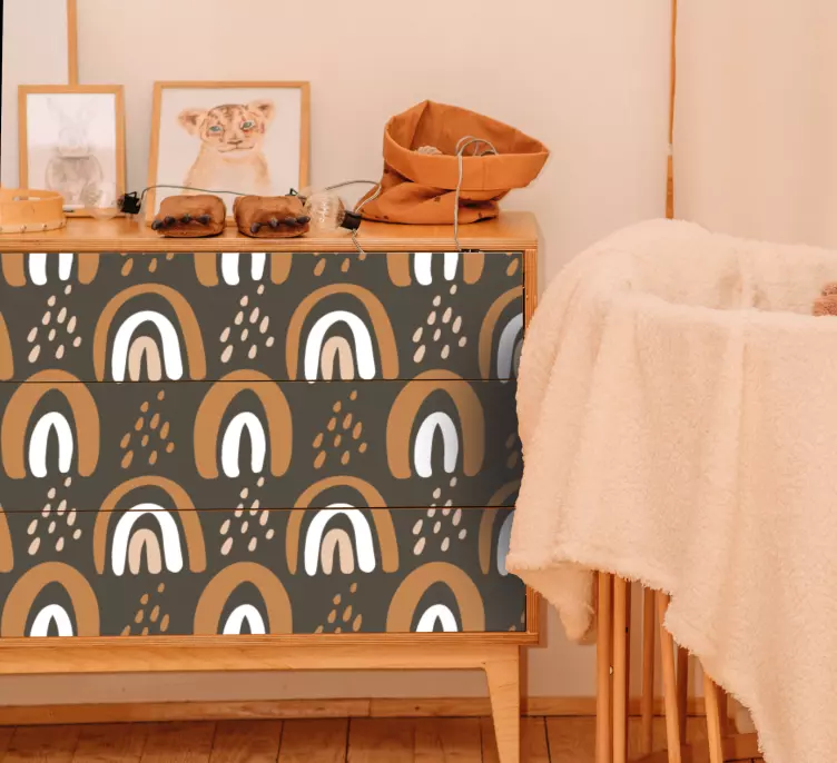 Transform your space with our vibrant Furniture sticker colorful arch designs! This eye-catching design features playful elements like rainbows and raindrops, combined with modern geometric patterns that create a textured and colorful atmosphere. Perfect for adding a touch of fun and creativity to your furniture, this sticker is a delightful way to refresh your home decor!