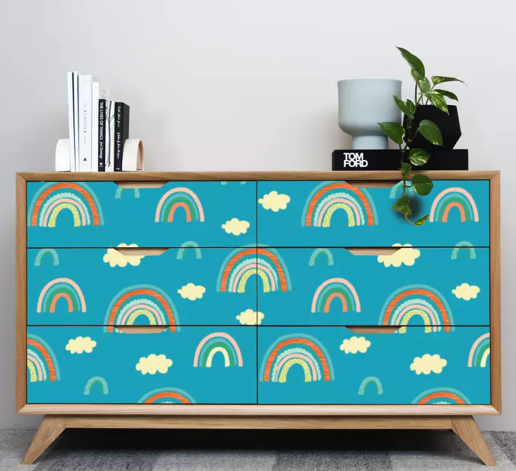 Transform your living space with our Furniture sticker colorful rainbow designs. This enchanting design features vibrant rainbows and fluffy clouds, creating a playful and whimsical atmosphere. The colorful patterns are perfect for adding a touch of joy to any furniture, making it a delightful addition to your home decor!