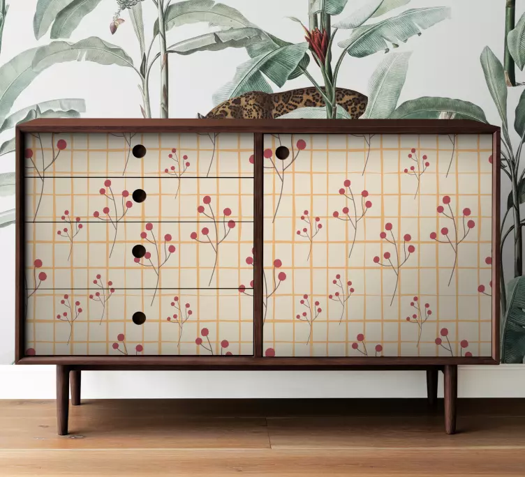 Transform your living space with our Furniture sticker floral pattern chest, featuring a stunning design that combines checkered and grid motifs with vibrant berries. This colorful floral pattern brings a refreshing touch to your furniture drawers, elevating them into eye-catching pieces of art! Perfect for those who appreciate beauty in everyday items.