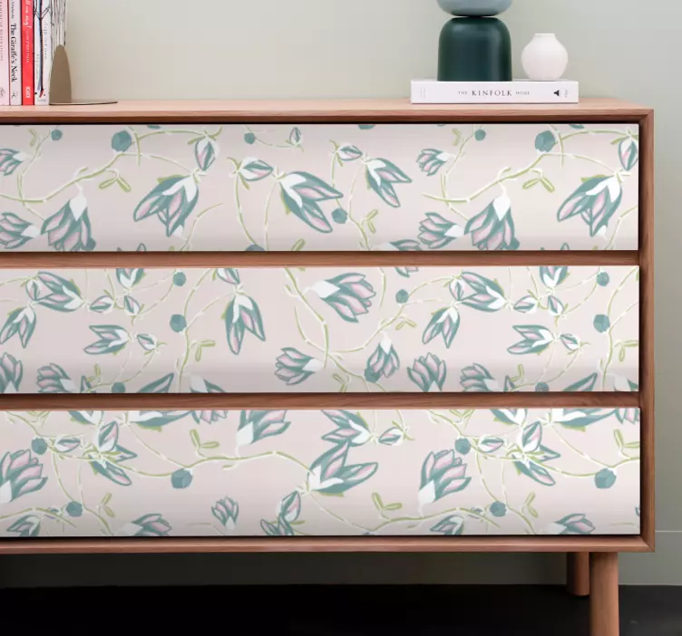 Transform your space with our Furniture sticker floral patterned drawer, featuring a delightful design that harmoniously blends vibrant pink flowers and lush green leaves. This stunning floral pattern adds a touch of nature to your furniture, creating a refreshing and inviting atmosphere that brightens any room!