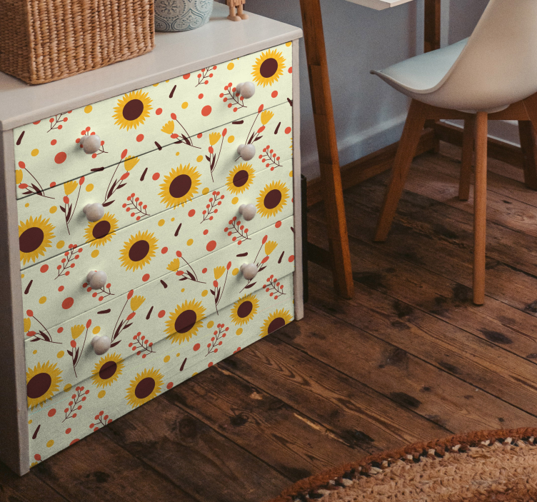 Transform your living space with our Furniture sticker sunflower pattern design, which features vibrant and colorful sunflowers beautifully arranged in a floral pattern. This stunning design captures the essence of nature and brings a refreshing touch to your furniture, making it the perfect choice for anyone looking to enhance their home décor!