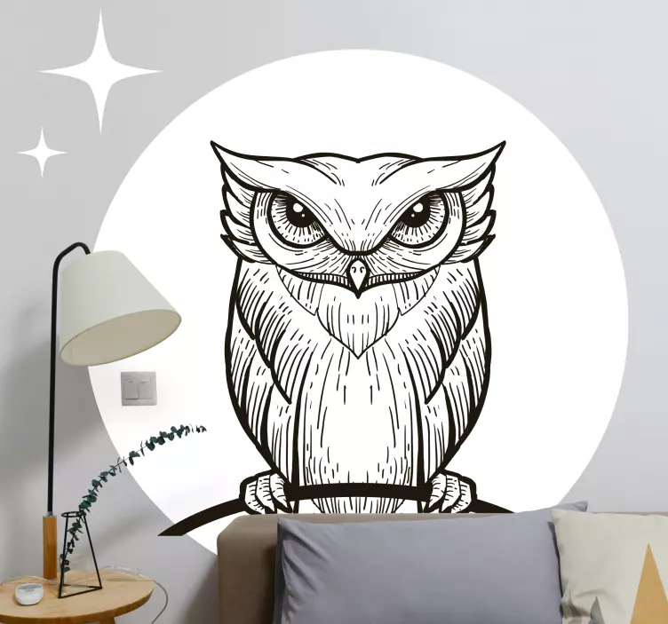 Transform your space with our stunning Headboard wall sticker intricate wise owl, a beautiful depiction of a circular owl surrounded by twinkling stars and intricate nature illustrations. This detailed black and white design brings a touch of sophistication and whimsy to any room, making it a perfect addition for those who appreciate art and creativity!