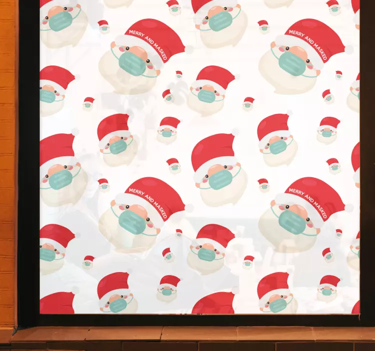 Transform your holiday celebrations with our stunning Holiday sticker masked santa characters. This delightful design showcases Santa wearing a festive face mask, perfectly capturing the spirit of the season while promoting safety. Made as a window sticker, it features a vibrant pattern that adds a cheerful touch to your Christmas decor. Embrace the holidays with this festive addition to your home!