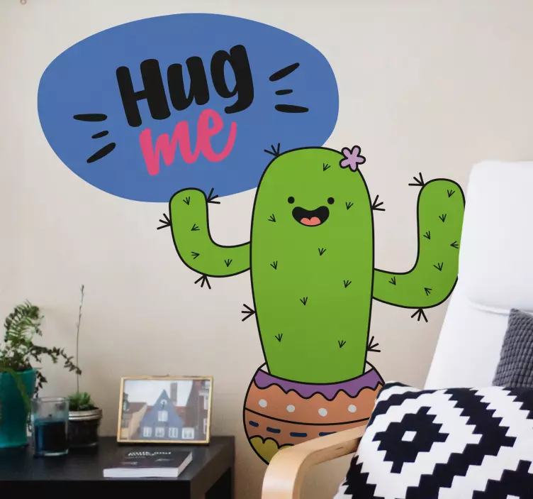 Hug me cactus flower wall decal