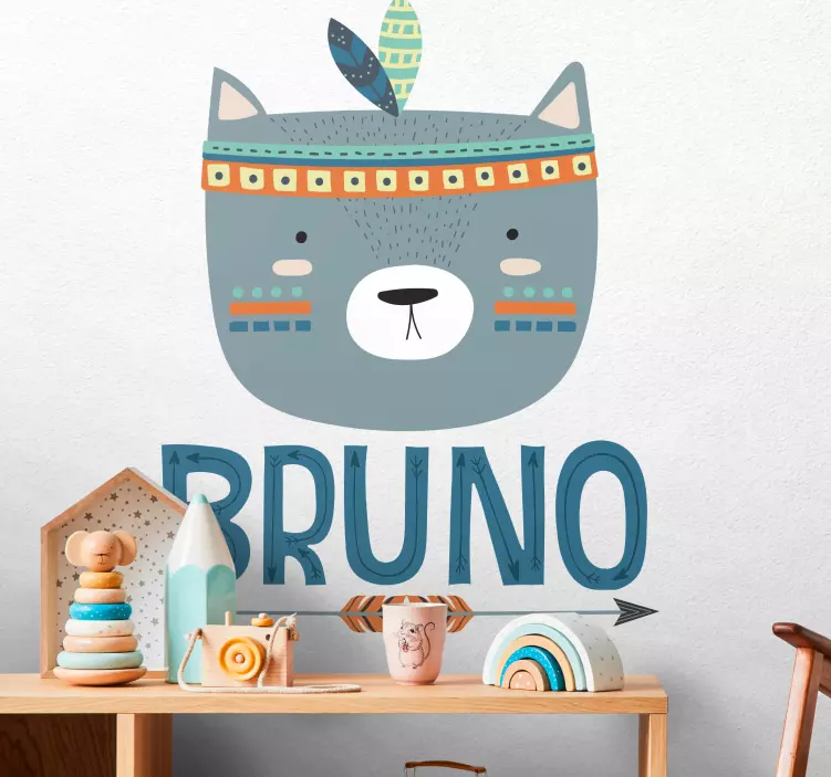 Reference: A49746This playful design features a charming animal face adorned with a feather headdress. The vibrant colors and friendly expression make it a perfect addition to a child's space, inviting joy and creativity. Personalization options enhance this piece, making it uniquely special.