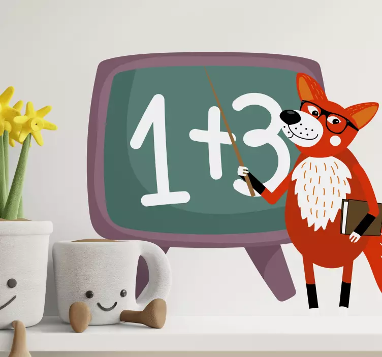 The Kid's sticker playful teaching fox features a whimsical design that combines the charm of a comic fox with the role of a teacher. This delightful cartoon character engages children in a fun and interactive way, making learning about math feel like an adventure in their kids room. The playful wild animal theme sparks imagination and creativity, turning any space into a vibrant class setting.