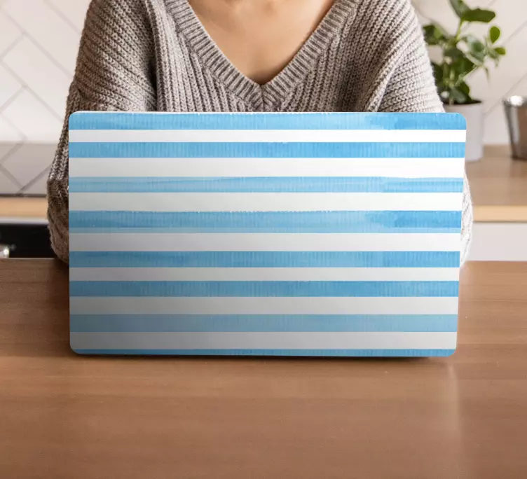 Enhance your workspace with the Laptop skin blue striped surface laptop skin that brings a fresh and vibrant touch to your laptop. This unique decoration not only protects your device but also allows you to express your personal style. The playful stripes create an inviting atmosphere, making work and play more enjoyable! Let your laptop reflect your personality!