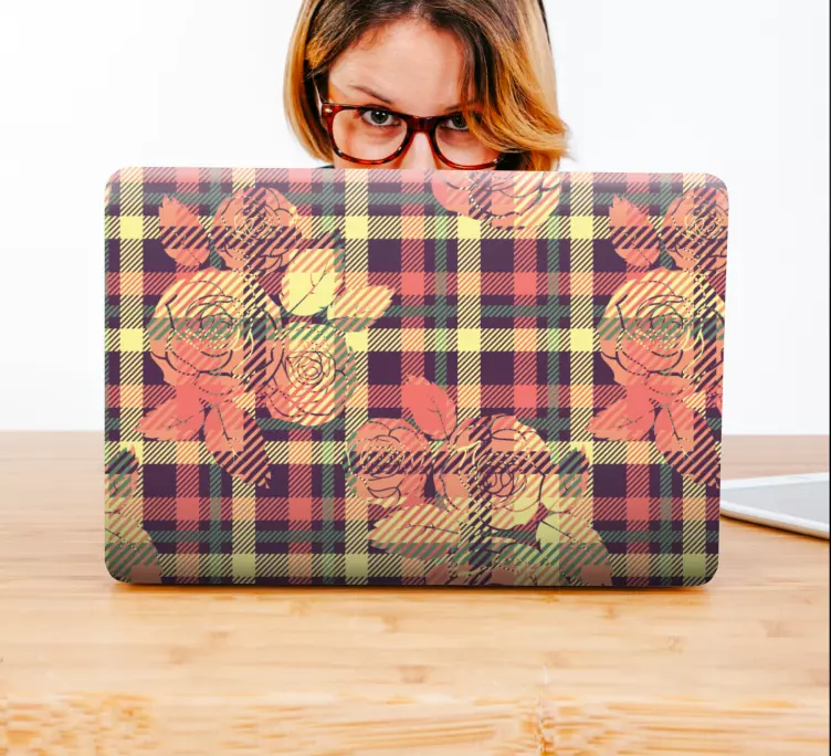 Laptop skin floral plaid overlay