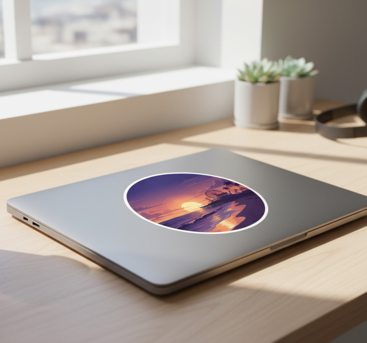 The Laptop sticker coastal purple sunset scene Laptop sticker is not just a visual delight; it serves as a daily reminder of the beauty that surrounds us. Transform your laptop into a canvas that sparks joy and creativity, making every work session feel like a serene escape. This decorative piece is perfect for anyone wanting to inspire positivity and tranquility in their daily routine.