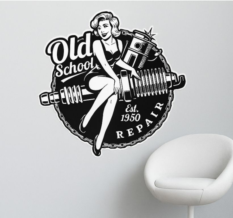 The Motorbike sticker vintage garage pinup motorbike sticker serves as an inspiring decoration that transforms mundane spaces into vibrant showcases of personality. Imagine adorning your garage, workshop, or even your living room with this stunning piece. It not only captures the spirit of freedom and adventure associated with motorbiking but also sparks conversations and admiration from guests!