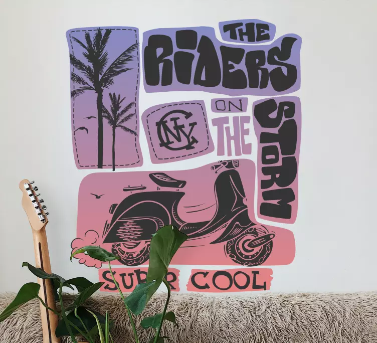 Transform your space with our stunning Object sticker scooter palm trees design! This vibrant sticker features a lively scooter, summery palm trees, and a dash of music that radiates those warm summer vibes. Perfect for any transportation enthusiast, this design brings a playful touch to your interior or exterior decor.