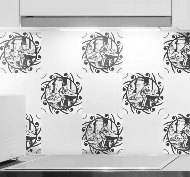 Introducing our Object sticker vintage craft scene, a stunning blend of artistic expression and functional design. This captivating sticker showcases a unique baking scene featuring a person working with tiles, enhanced by intricate engravings in a striking black and white palette. The abstract design invites creativity and inspiration into any space!
