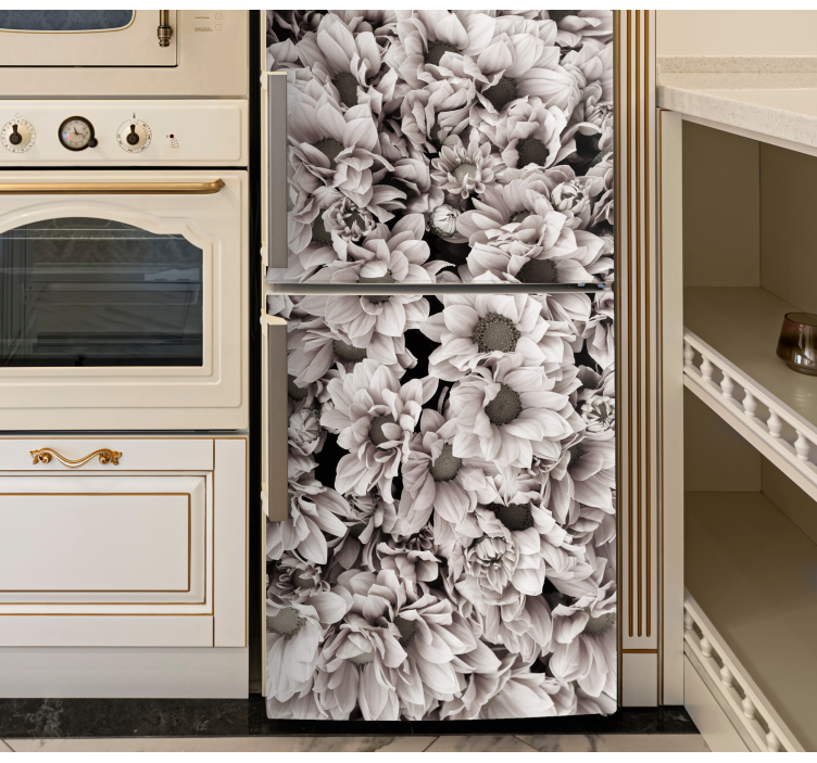 Transform the appearance of your fridge with our stunning peony grey flowers fridge decal. Elevate the style of your kitchen with this unique design that adds a touch of elegance. Customizing the look of your ice box has never been easier.
