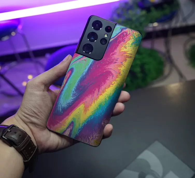 Our Samsung stickers colorful fluid swirl Samsung stickers are the perfect way to showcase your unique style while ensuring your phone stays protected. The colorful design will infuse your device with personality, making it stand out from the crowd. Plus, it acts as a shield against minor damages, ensuring your Samsung phone remains in pristine condition!