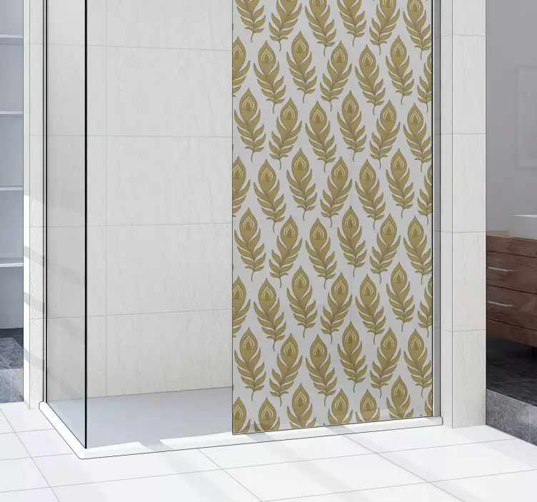 Introducing our stunning Shower screen sticker elegant leaf design, a beautiful blend of nature and artistry. This exquisite design features intricate flowers and florals, delicately adorned with feathers and leaves, all complemented by a touch of golden finesse. Transform your shower screen into a decorative masterpiece that brings the beauty of nature into your bathroom!