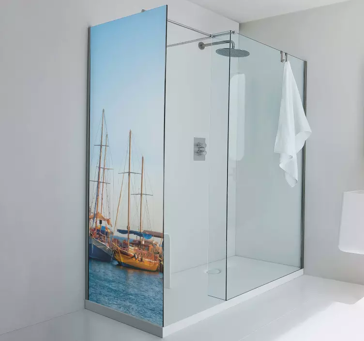 Transform your bathroom into a tranquil harbor with our Shower screen sticker sailing boats scene. This captivating design features beautifully illustrated boats gliding through serene waters, set against a picturesque dock and marine backdrop. The essence of sailing and outdoor adventures comes alive in your shower, making every bath a voyage of relaxation!