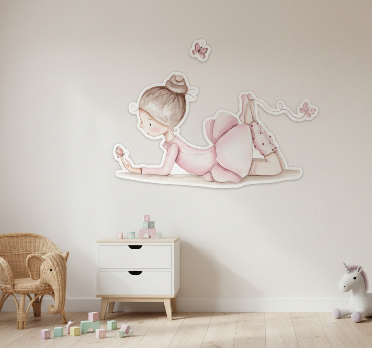 The Sticker illustration ballerina with butterflies sticker illustration is not just a decoration; it's an invitation to dream and imagine. This captivating design transforms any wall into a canvas of creativity, inspiring young dancers and encouraging a playful spirit. With its charming visuals, it enhances the ambiance of any room, making it a wonderful choice for parents looking to foster a beautiful and imaginative environment!
