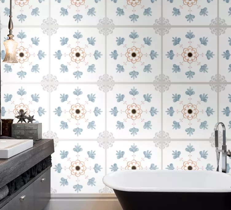 Transform your space with our stunning Tile sticker floral mosaic design. This beautiful design features a harmonious blend of floral and plant motifs, enriched with intricate flower designs that evoke the charm of ceramic art. The captivating shades of blue and vibrant cement tiles create an eye-catching visual that will breathe life into any room. Perfect for those looking to add a touch of elegance and personality to their decor!