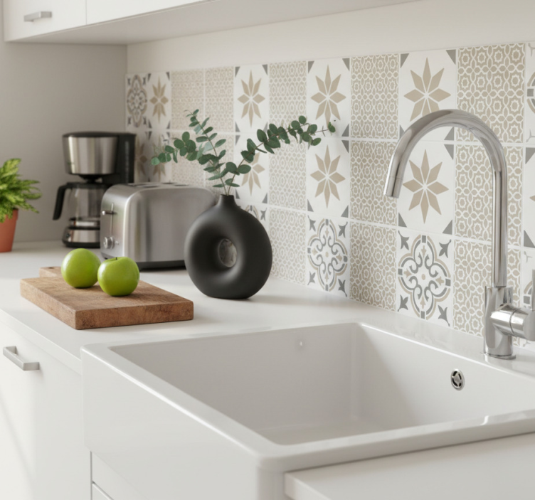 Reference: A53820Transform your space with the stunning Tile sticker sandstone moroccan mosaic design! This eye-catching sticker features intricate patterns inspired by traditional Moroccan mosaics, showcasing a delightful blend of warmth and elegance. With its captivating sandstone hues and detailed motifs, this product is perfect for adding a touch of exotic charm to any room.