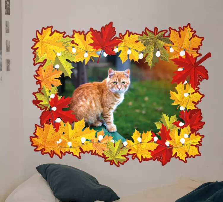 Wall sticker frame cat surrounded by leaves