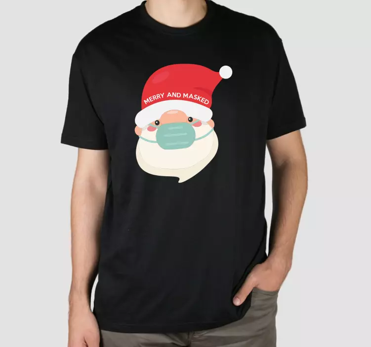 Caring for your Christmas t-shirt merry santa with face mask Christmas t-shirt is easy! Simply machine wash it at 30 degrees to keep it looking fresh and vibrant. We recommend ironing inside out or using a barrier cloth over the design to maintain its quality. Enjoy wearing your festive shirt without the hassle of complicated cleaning routines!