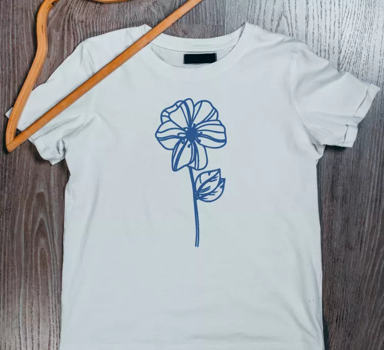 Reference: T4406This stylish garment features a minimalist floral design, showcasing a delicate bloom with a graceful stem and leaf. The elegant blue outline adds a touch of sophistication, making it perfect for casual wear.