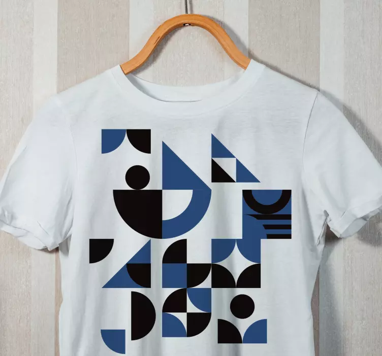Introducing our stunning Geometric patterned t-shirt, a modern masterpiece that beautifully blends geometry and abstract illustration. This stylish design features intricate geometries and shapes that create an eye-catching puzzle effect, all set against a captivating backdrop of blue and black. Perfect for those who appreciate contemporary fashion!