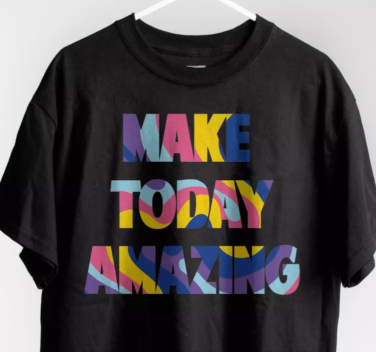 Introducing our Make today amazing t-shirt, a vibrant expression of positivity and motivation! This modern design features bold, colorful typography that inspires you to embrace each day with enthusiasm. The motivational sentence, beautifully crafted in a multicolor text, stands out against the fabric, making it a perfect choice for anyone looking to add a spark of inspiration to their wardrobe.