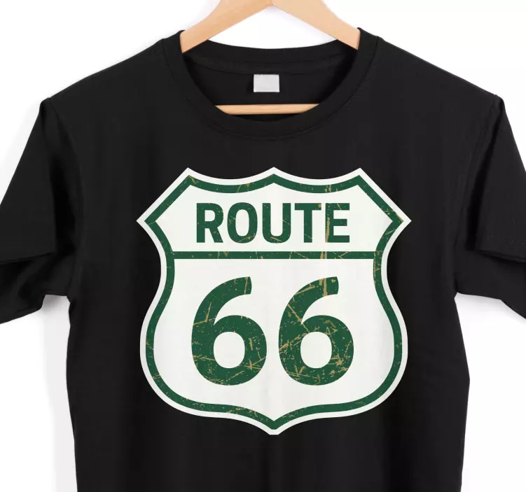 Reference: T4636This design features a classic Route 66 emblem, evoking a sense of nostalgia and adventure. The vintage aesthetic embodies the spirit of travel with its distressed look, making it perfect for enthusiasts of iconic American roadways.