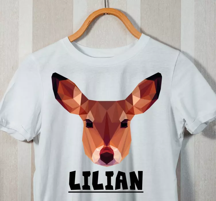 Introducing our Stylish deer head t-shirt, a unique blend of fashion and artistry! This eye-catching design showcases a geometric deer face, combining the whimsical charm of cartoon aesthetics with a polygonal twist. Perfect for animal lovers, you can even customize it with your own name, making it a personal statement piece!