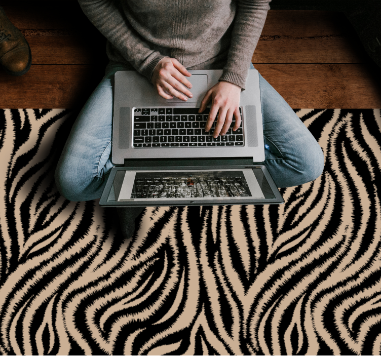 Transform your space with the striking design of the Animal print vinyl rug with zebra stripes. This bold piece features a stunning zebra skin pattern that evokes the wild beauty of nature, showcasing an exquisite blend of black and beige tones that make a statement in any room. The animal print aesthetic brings a touch of wildlife into your home, creating a dynamic atmosphere that is both inviting and exhilarating!