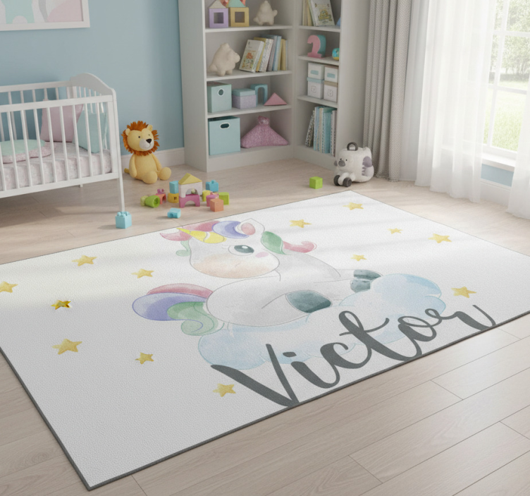 Animal vinyl rug watercolor unicorn with clouds