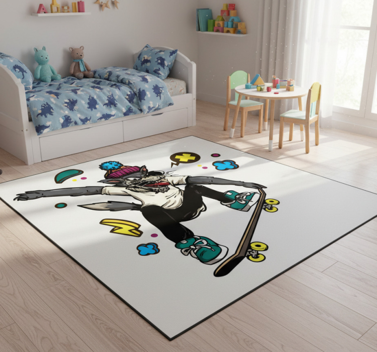 Animal vinyl rug wolf on skate