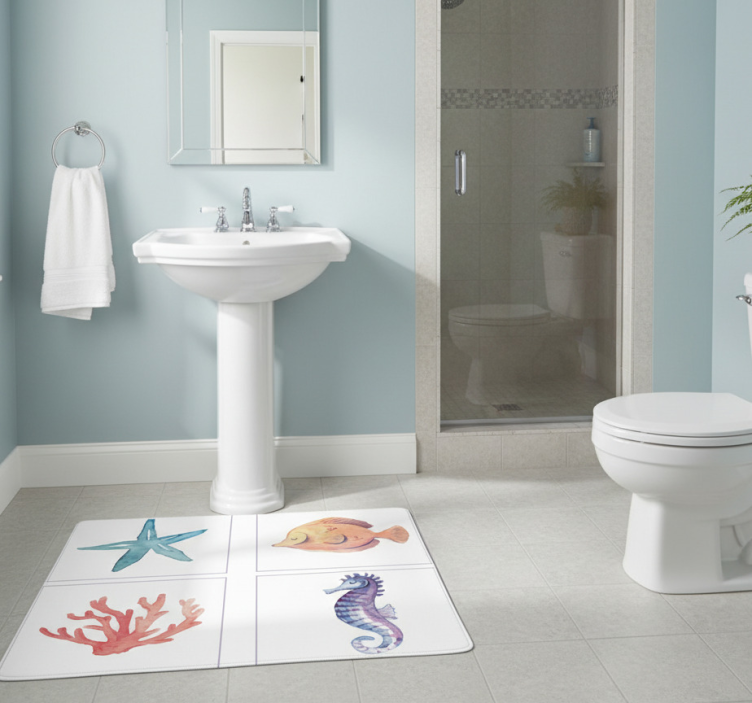 Bathroom vinyl rug marine animals