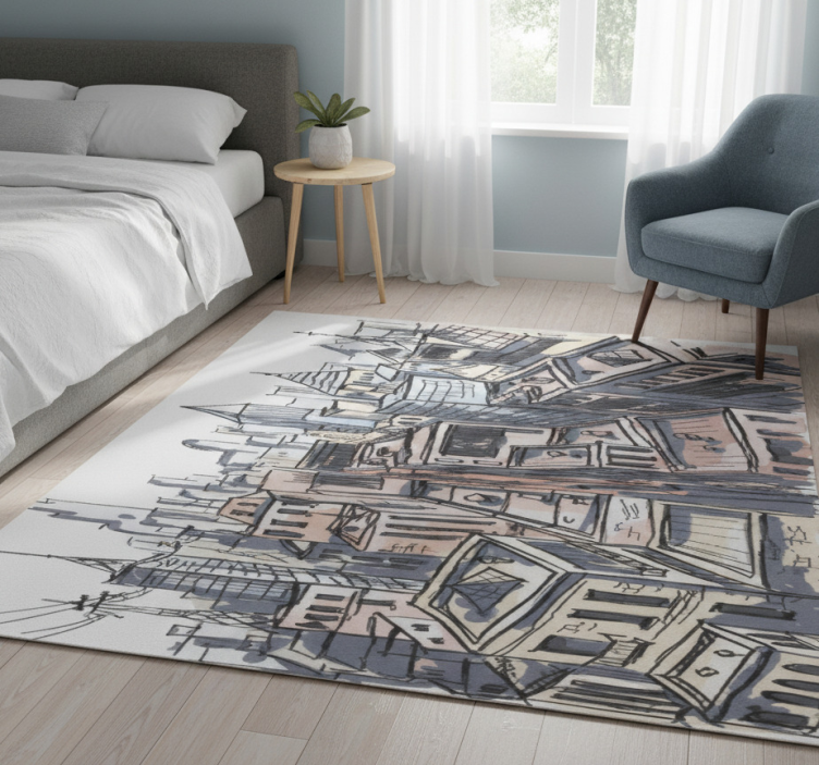 Aquarella city bedroom vinyl rug