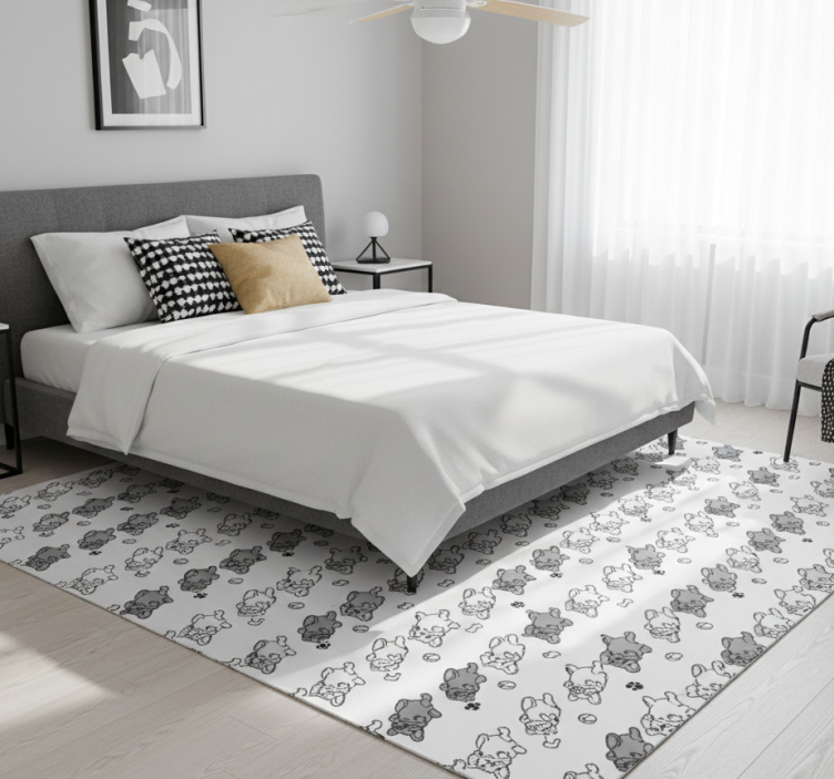 Bedroom vinyl rug with black and gray dog pattern