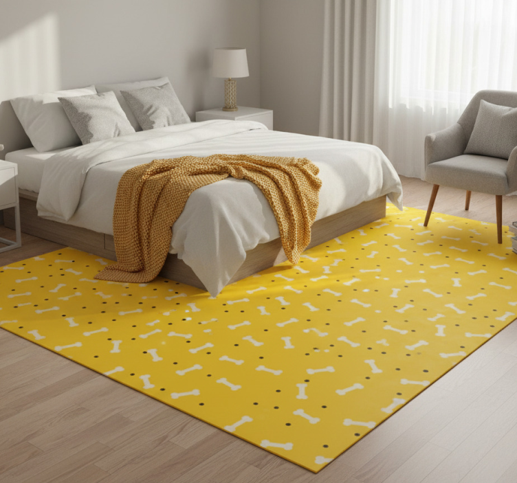Bedroom vinyl rug with cute yellow dog bone design