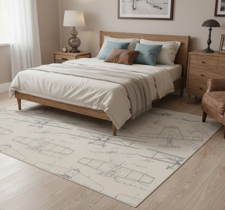 The Bedroom vinyl rug with vintage planes pattern bedroom vinyl rug is not just a floor covering; it's a statement piece that elevates your decor. Its charming design brings a sense of adventure and whimsy to your bedroom, making it a perfect spot for unwinding after a long day. Imagine stepping onto this delightful rug each morning, igniting your passion for exploration and comfort!