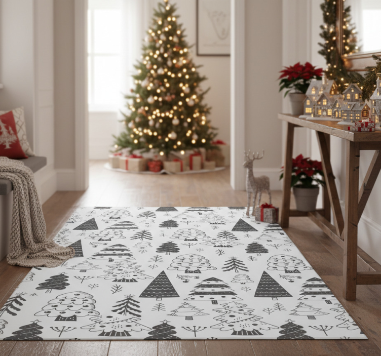 Christmas vinyl rug with christmas tree design