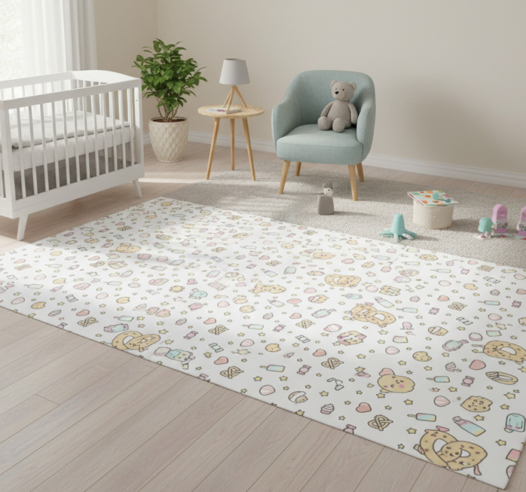Cute babies snacks bedroom vinyl rug