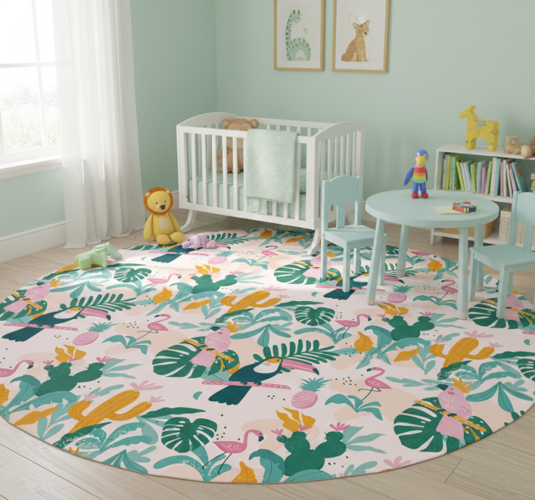 The Tropical birds and leaves animal vinyl rug is more than just a floor covering; it's a statement piece that elevates your interior design. Its vivid colors and playful motifs inspire joy and creativity, making it an ideal choice for living rooms, nurseries, or any space that craves a touch of cheer. Imagine stepping onto a soft, inviting rug that instantly brightens your day and complements your decor!