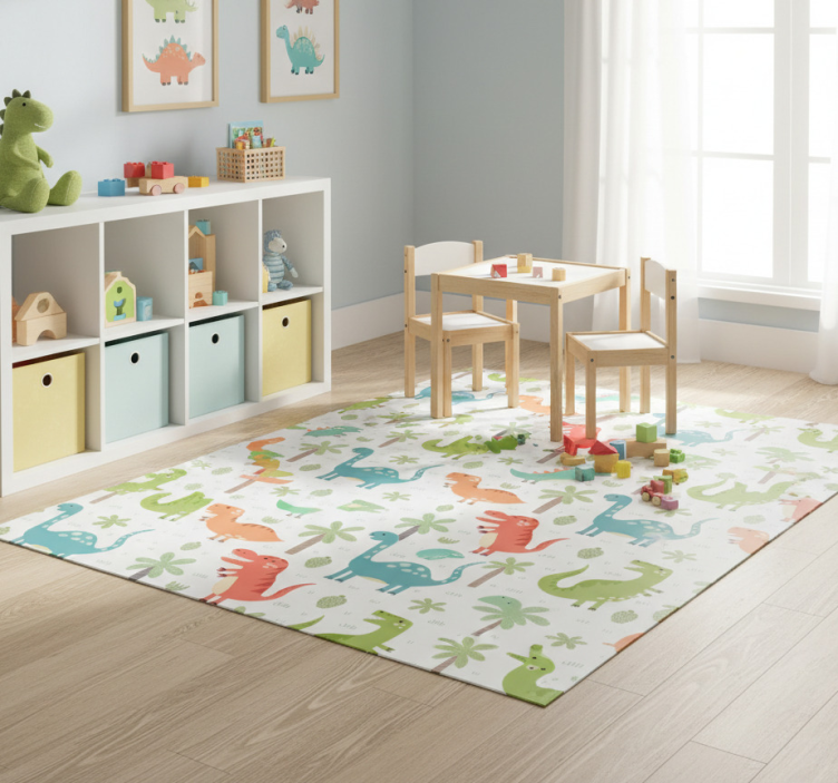 Keeping your Happy dinosaur animal vinyl rug in pristine condition is a breeze! Simply wipe it down with a damp cloth and mild detergent for quick and easy cleaning. Its resilient material ensures that it stays looking fresh and vibrant!