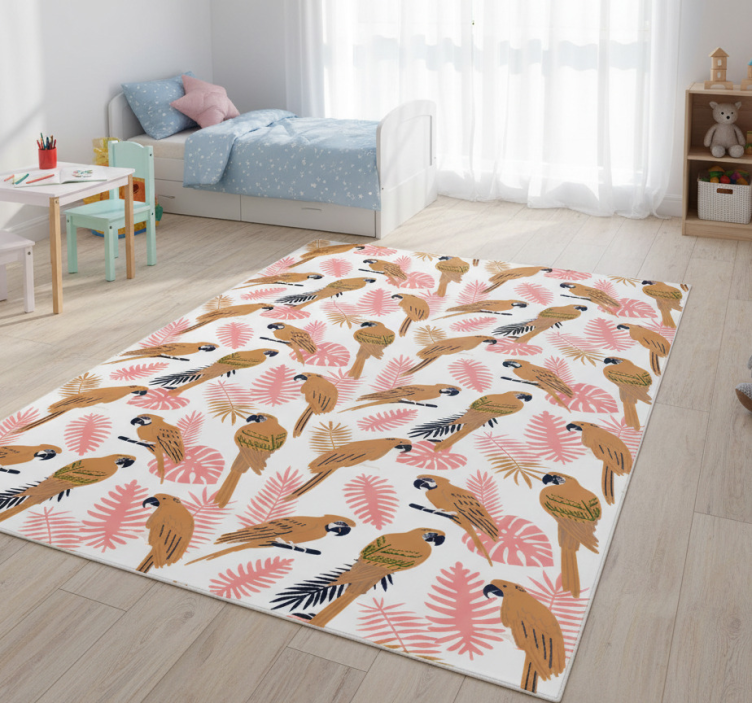 Choosing the Orange parrots with pink flowers animal vinyl rug for your home decoration is a decision that radiates charm and warmth. This enchanting rug can effortlessly transform any space, whether it's a cozy living room or a vibrant playroom. Its lively design invites happiness and creativity, making it an ideal choice for families and individuals looking to uplift their interiors!