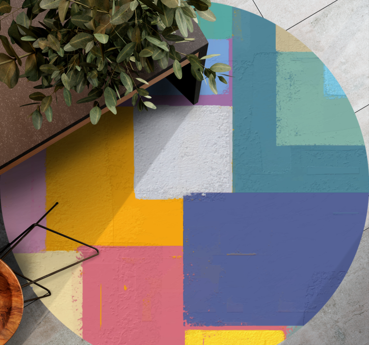 Transform your space with the Vivid geometric figures geometric vinyl rug, a stunning addition that showcases a delightful array of colorful squares and rectangles. This geometric masterpiece combines abstract shapes with vibrant hues, creating a visually captivating centerpiece that brings life to any room.